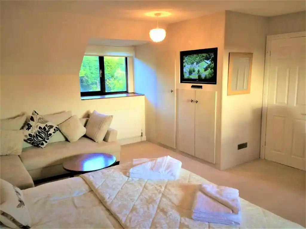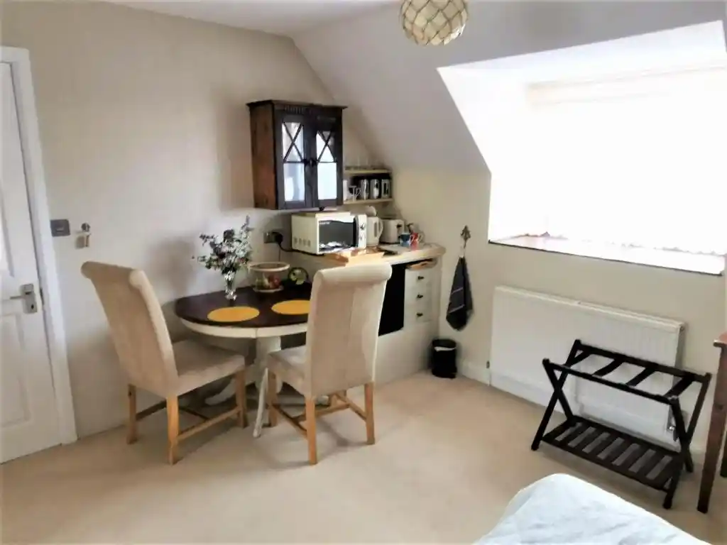 The Studio Apartment the” Beehive” is perfect for a Self Contained Staycation providing a spacious room with a King size bed and an EnSuite shower on the first floor. The room has a lounge area with a big sofa bed. (The sofa bed would suit a second adult who would rather have a separate bed or a child (under 18) sharing with parents/guardians.)